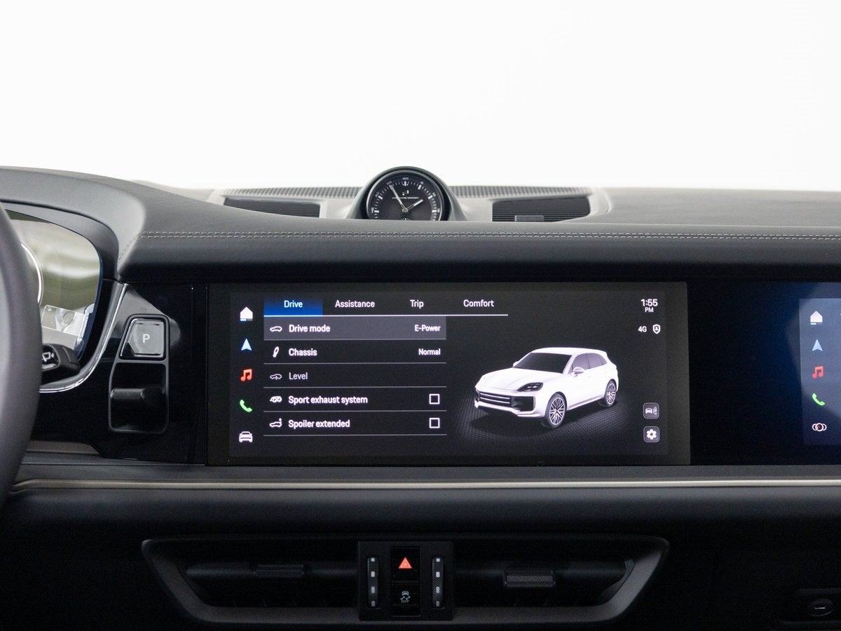 Step inside and the Leather Interior in Black with Turbonite Accents welcomes you into an elevated world of comfort and technology. Highlights include Interior Grab Handles in Race-Tex - Black, Burmester 3D High-End Surround Sound System, and Panoramic Roof System. The Porsche Crest on Headrests (Front and Rear), Center Console Armrest with Model Designation, and Interior Trim in Leather create a tailored and luxurious atmosphere.