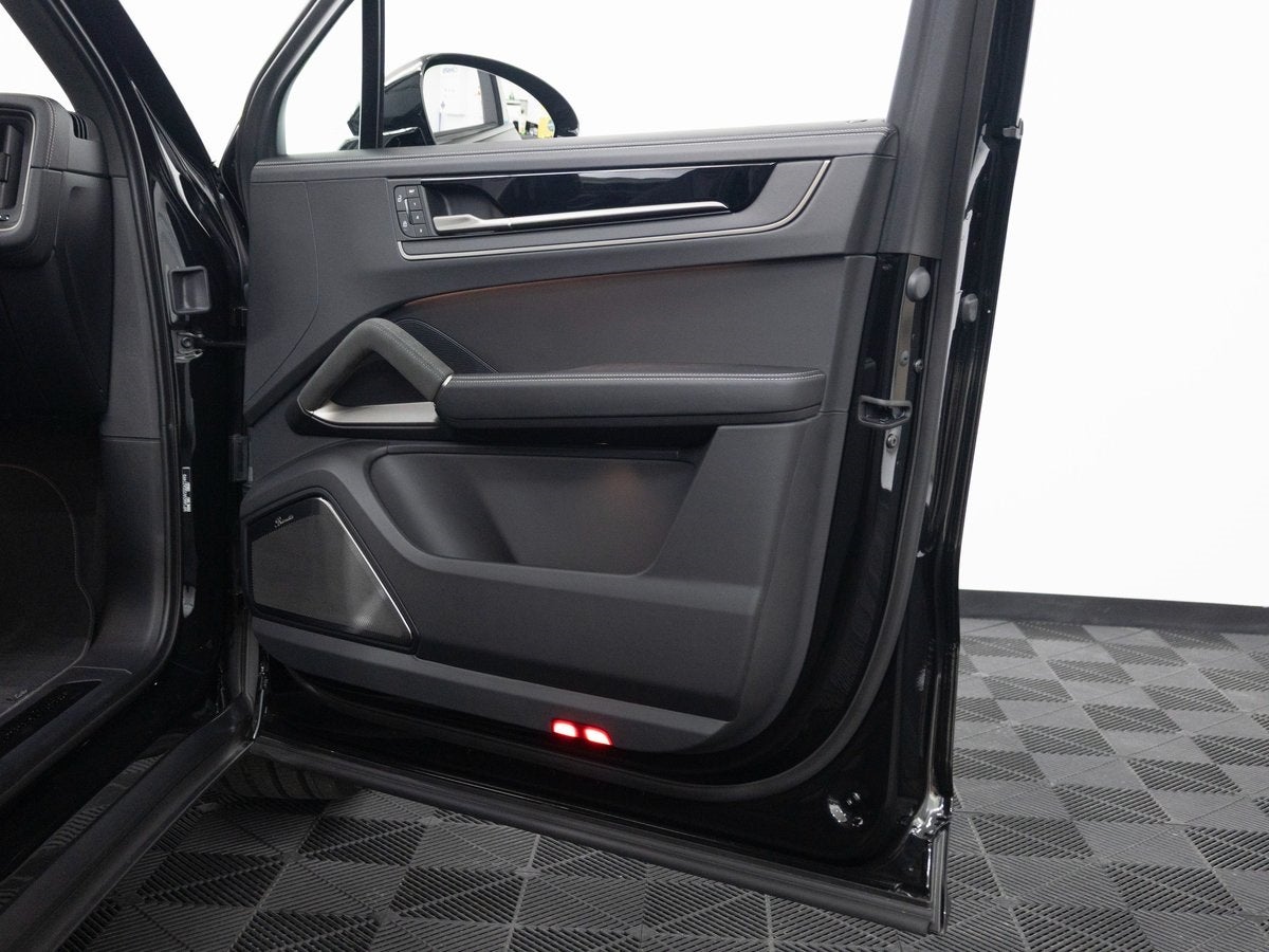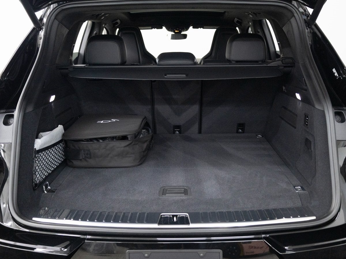 The Cayenne Turbo E-Hybrid stands as a beacon of innovation and athleticism, its Chromite Black Metallic exterior elevated by striking 22 SportDesign Wheels and HD-Matrix Design LED Headlights in Black. Exclusive Design Taillights and the PORSCHE Logo and Model Designation on Rear in High Gloss Black enhance its bold road presence, while Rear Axle Steering and Sport Exhaust System with Tailpipes in Dark Bronze underscore its dynamic capability.