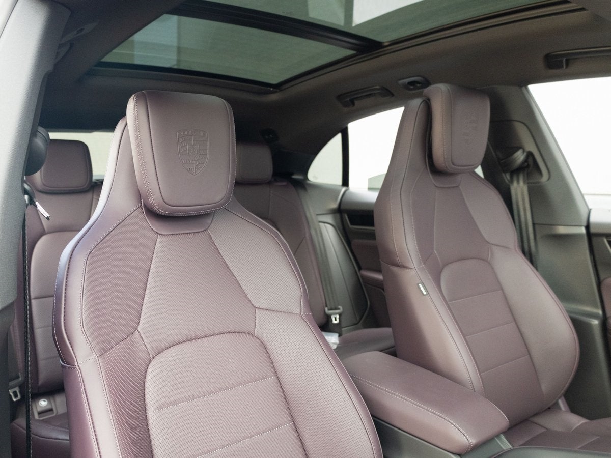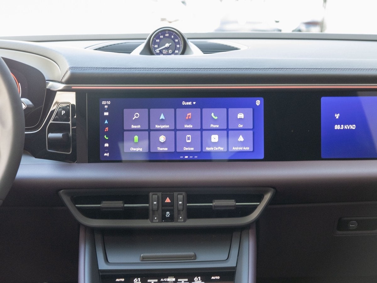 The cabin welcomes you with the distinctive Leather Package in Black/Blackberry, a striking and luxurious color combination that elevates the interior aesthetic. 14-Way Power Comfort Seats with Memory deliver tailored support, and comfort is further enhanced by Ventilated Front Seats, Heated Rear Seats, and Advanced 4-Zone Climate Control. Thoughtful upgrades like the Passenger Display, Heated GT Sport Steering Wheel in Leather, and Porsche Crest on Headrests reinforce the attention to detail throughout.