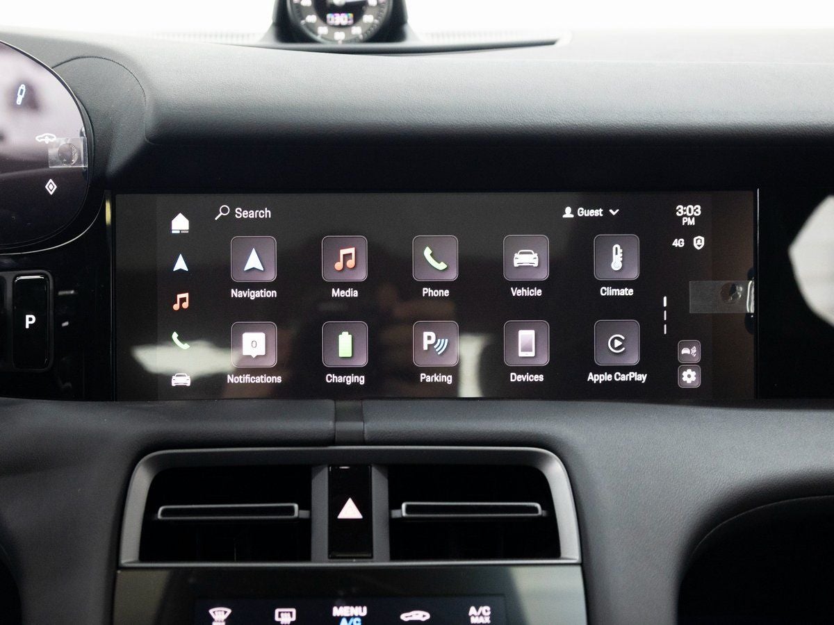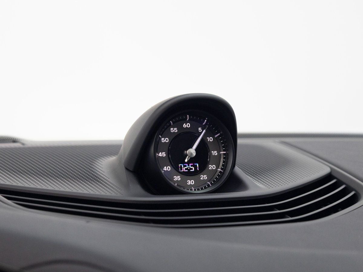 Step inside and the Leather-Free Race-Tex Interior in Black with Pepita Seat Centers greets you with a blend of heritage-inspired design and forward-thinking materials. Interior Trim in Matte Carbon Fiber enhances the performance-focused cockpit, while Pedals in Aluminum add a motorsport touch. The Panoramic Roof with Variable Light Control creates an airy, customizable ambiance, and Soft Close Doors elevate everyday refinement. Advanced 4-Zone Climate Control, Burmester 3D High-End Surround Sound System, and Night Vision Assist ensure comfort, immersion, and confidence on every journey.