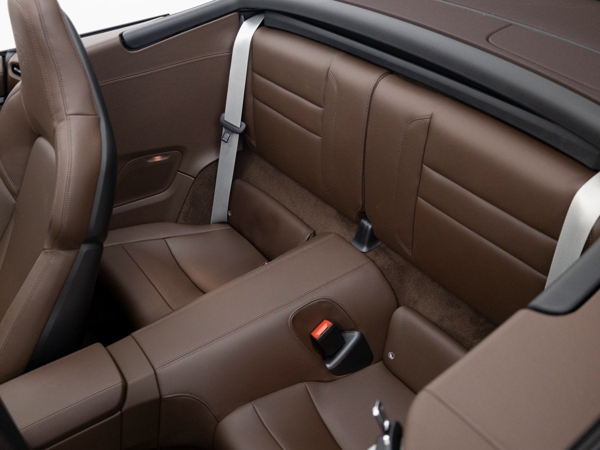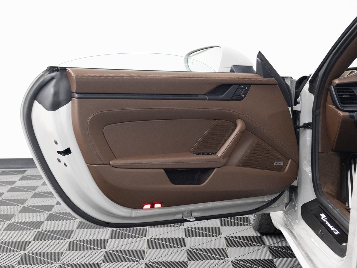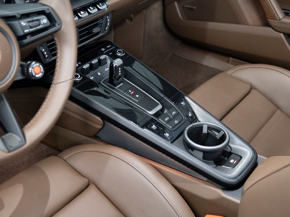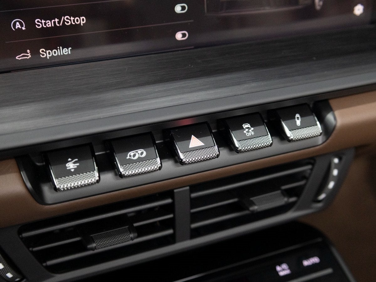The 911 Carrera 4 GTS Cabriolet stands as an icon of open-top performance, its Chalk exterior radiating understated confidence and motorsport heritage. Accentuated by SportDesign Side Skirts and 911-exclusive styling cues, it commands attention from every angle. HD-Matrix Design LED Headlights in Black and Exclusive Design Taillights sharpen its modern presence, while Brake Calipers in High Gloss Black add a purposeful finishing touch. With its Brown Cabriolet Roof, this GTS pairs striking contrast with timeless elegance.