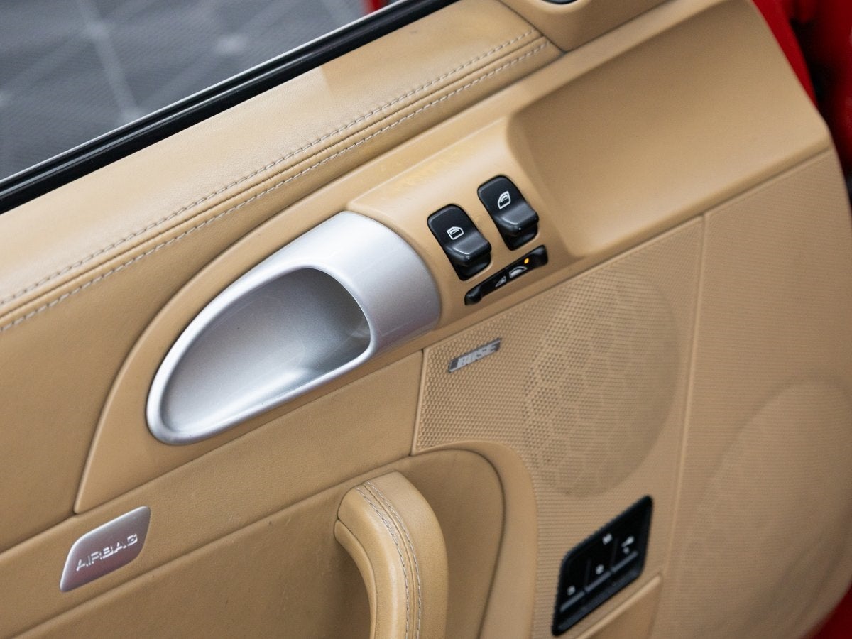 The 911 Carrera S Cabriolet strikes an elegant balance between open-air driving and exhilarating performance. Its Guards Red exterior is complemented by Wheel Spacers, a Cabriolet Roof in Cocoa, and classic Porsche styling cues. Details like Self-Dimming Mirrors and a Rod Antenna reflect the era's charm, while hinting at the engineering precision beneath its surface.