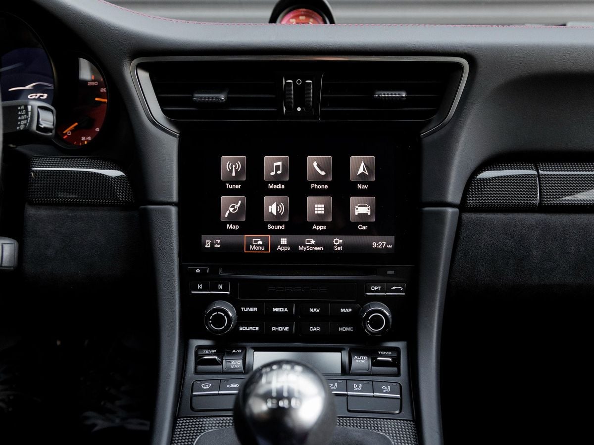 - Radio: Porsche Communication Management (PCM) -inc: mobile phone preparation, audio interfaces (Bluetooth®, USB, aux-in), Connect Plus (online navigation module, Apple CarPlay, telephone module and wireless internet access), Porsche Car Connect (car finder, remote vehicle status, remote services and Porsche Vehicle Tracking System (PVTS)), sound package plus sound system w/8 speakers, 150 watt total output, SiriusXM satellite radio (w/3-month trial) and HD Radio receiver