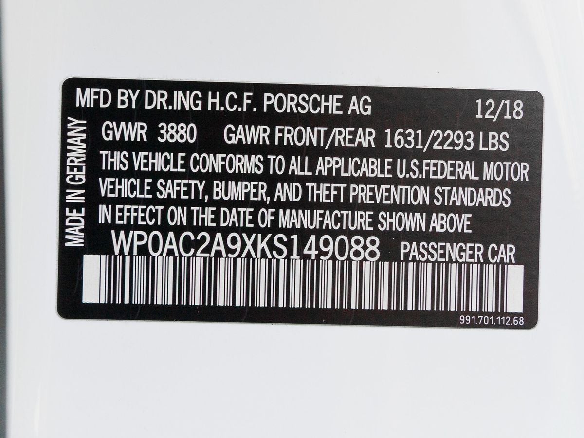 All information is subject to change without notice. Neither Porsche Cars North America, Inc. nor the manufacturer can accept liability arising from the use of any information contained herein. Only an actual invoice issued by PCNA at the time a vehicle is sold to an authorized Porsche Center may be used as an official indication of equipment and pricing. The Total Manufacturers Suggested Retail Price (MSRP) shown excludes taxes, title, registration, other optional or regionally required equipment, dealer charges, and any potential tariffs. The price and availability of Individually Commissioned Equipment (CXX) can be determined only after review and analysis by the manufacturer. Actual selling prices are set by dealers and may vary.