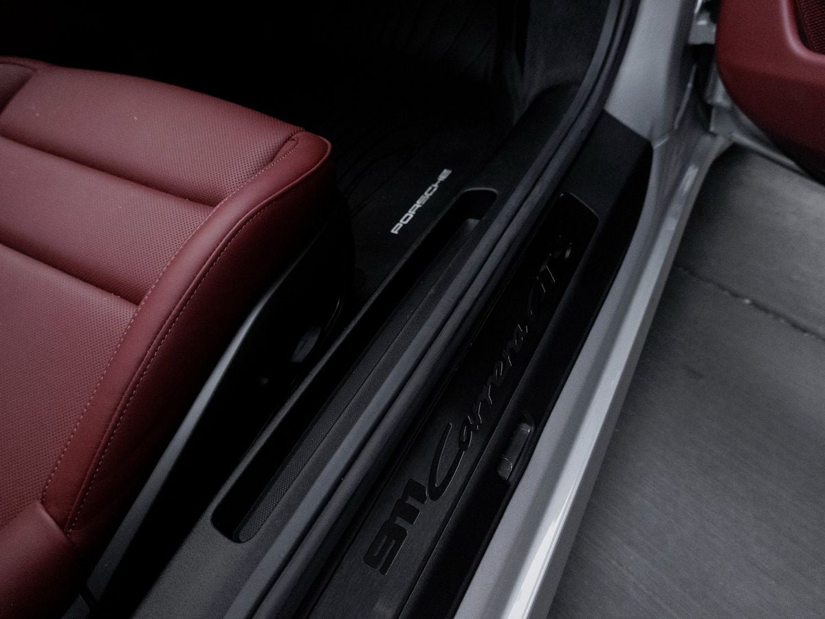 Step inside and the Black/Bordeaux Red Leather interior greets you, exuding an air of luxury that only Porsche can deliver. The Heated GT Sport Steering Wheel and Ambient Lighting create an inviting cockpit, while Ventilated Front Seats ensure comfort in all conditions. The BOSE Surround Sound System and thoughtfully crafted Storage Package speak to a refined and immersive driving experience.